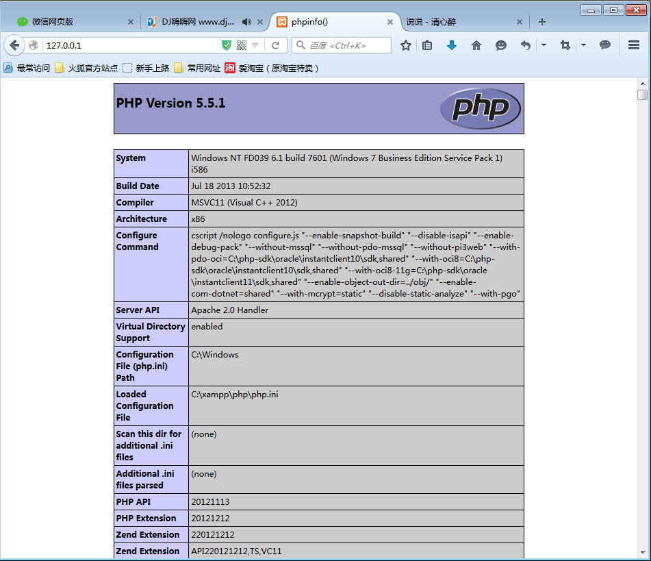 如果可以显示类似内容说明环境配置成功,可以准备入手PHP开发了。